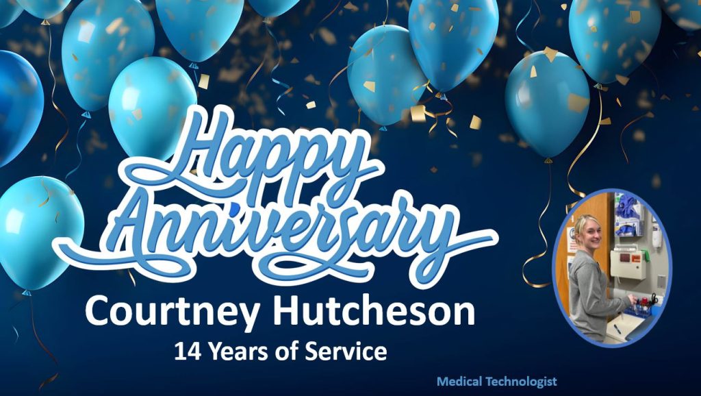 Happy Work Anniversary to: Cheryl Elms Edwards, LPN - Med/Surg - 1 year Ashlyn Bazemore, LPN - Emergency Room - 8 years Deana Grantham, MLT -